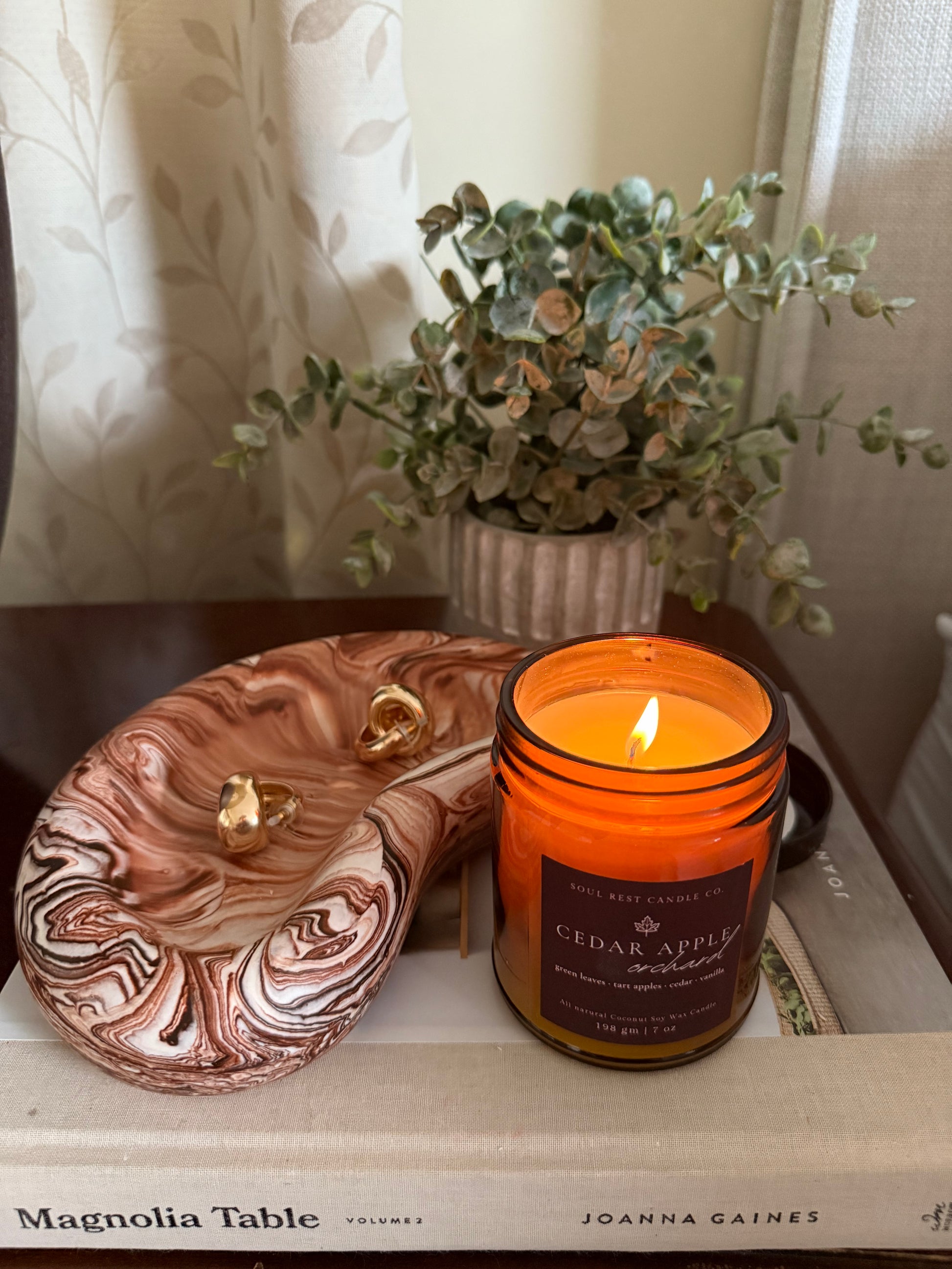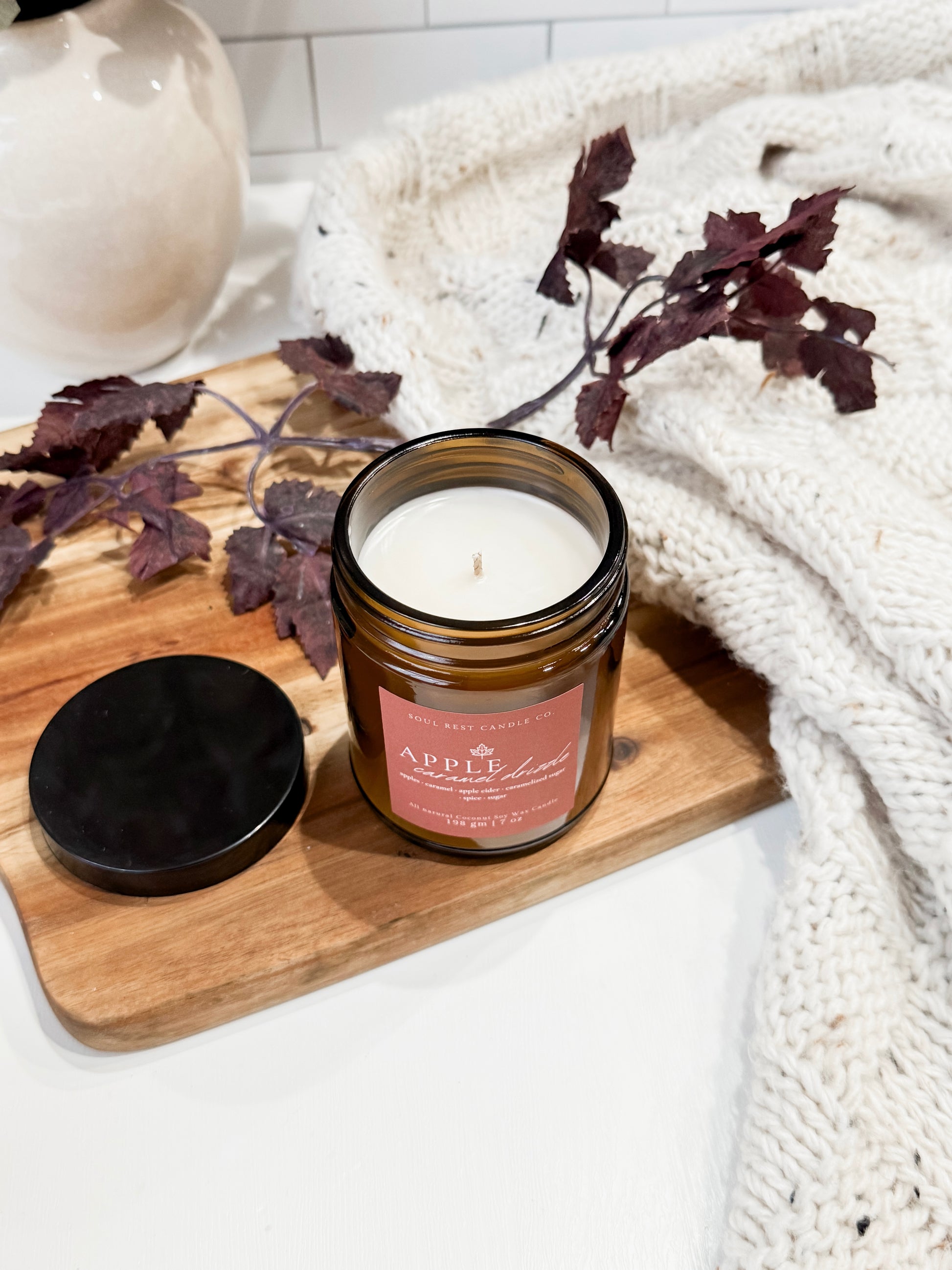 This candle comes in these gorgeous, amber jars with cotton wicks. This candle is sure to set a cozy, warm vibe.