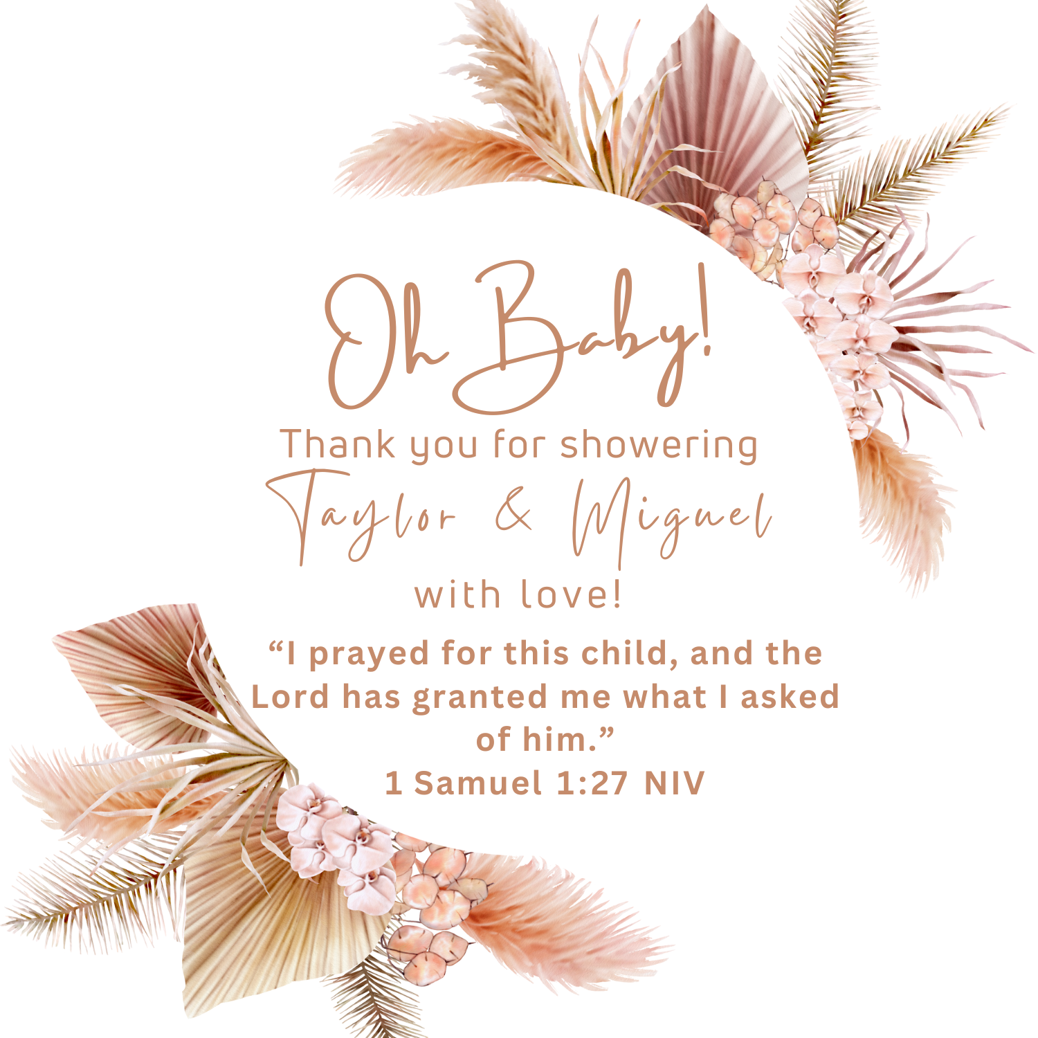I will send you a proof of the designed label for your approval and a picture of the finished product. You can also add a Bible verse of your choice or I can suggest one based on your occasion. Please note all the details in the personalization area provided or message me directly.