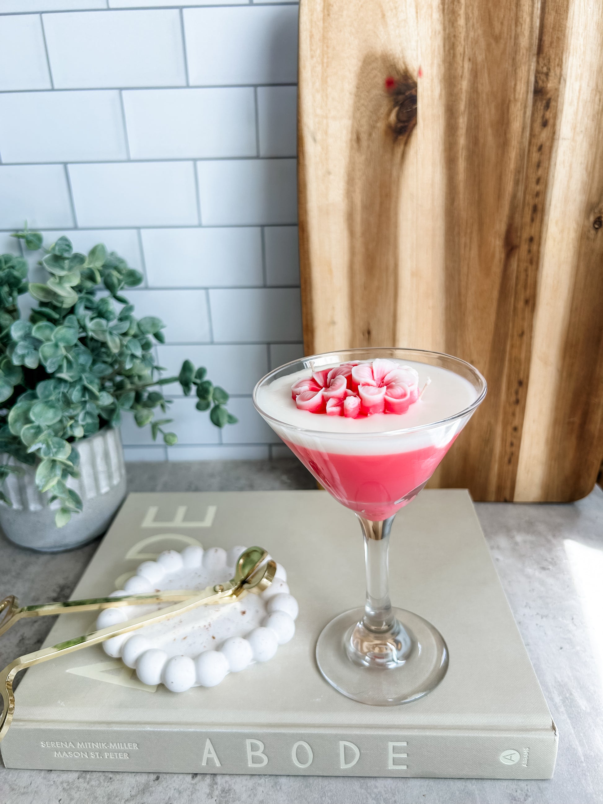 Our Cherry Blossom Martini candle will make you feel like you're strolling down a street filled with blooming Cherry Blossoms with their fragrance notes of cherry blossoms, freesia, sandalwood, clear musk and dark amber. Truly a spring favorite, and the addition of our realistic Cherry Blossom embed makes it a true beauty for display.