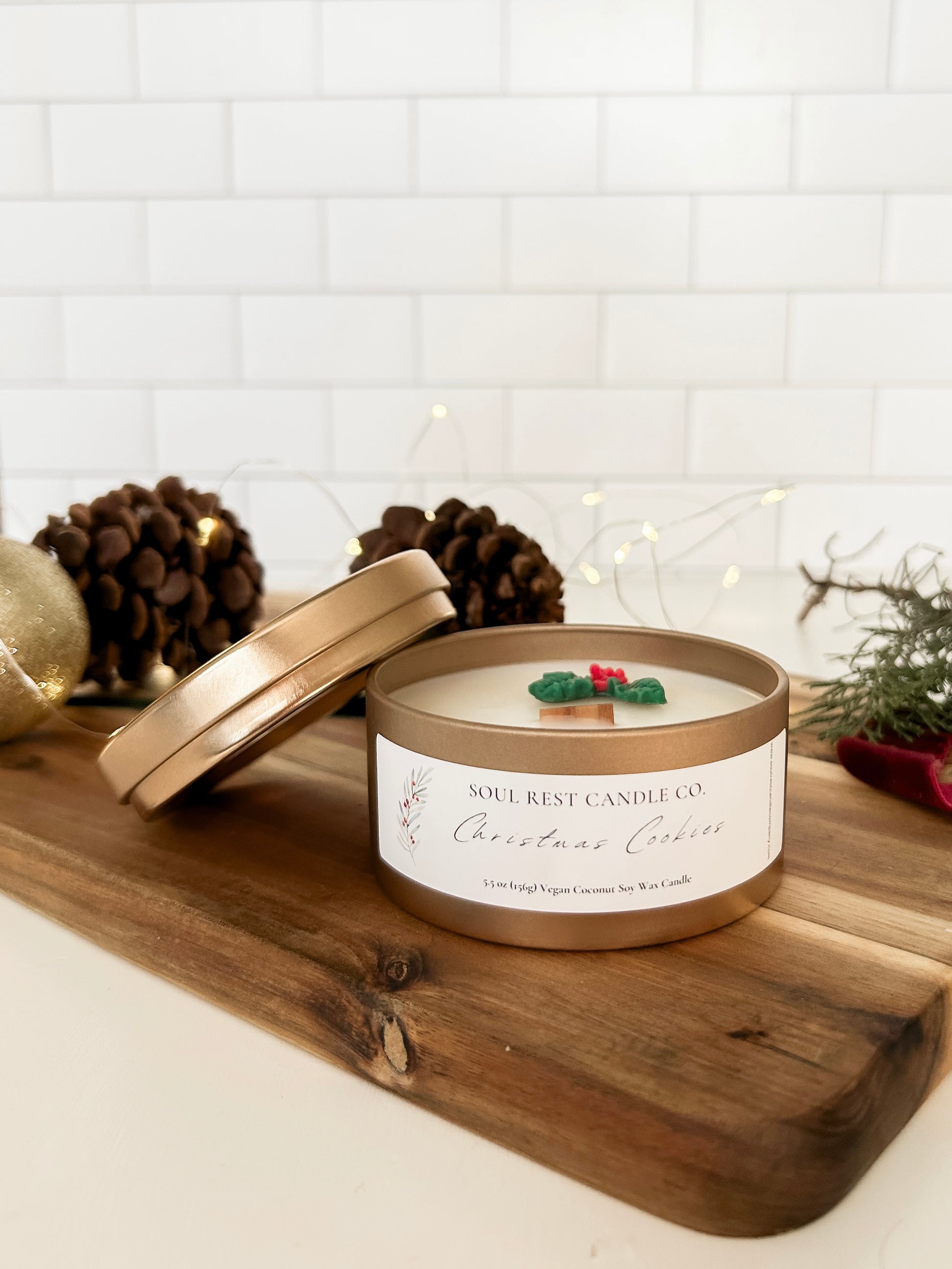 Bring the sweet aroma of freshly baked cookies into your home with this warm and inviting scent. Bright hints of citrus and ginger give way to rich notes of molasses, cinnamon, and nutmeg, capturing the essence of holiday baking. Blended with clove, vanilla, and a buttery chestnut finish, this candle is like a cozy kitchen filled with the comforting scents of Christmas treats. This candle comes in these gorgeous, amber jars with cotton wicks and adorned with a beautiful holly. This candle is sure to set a cozy, warm vibe.