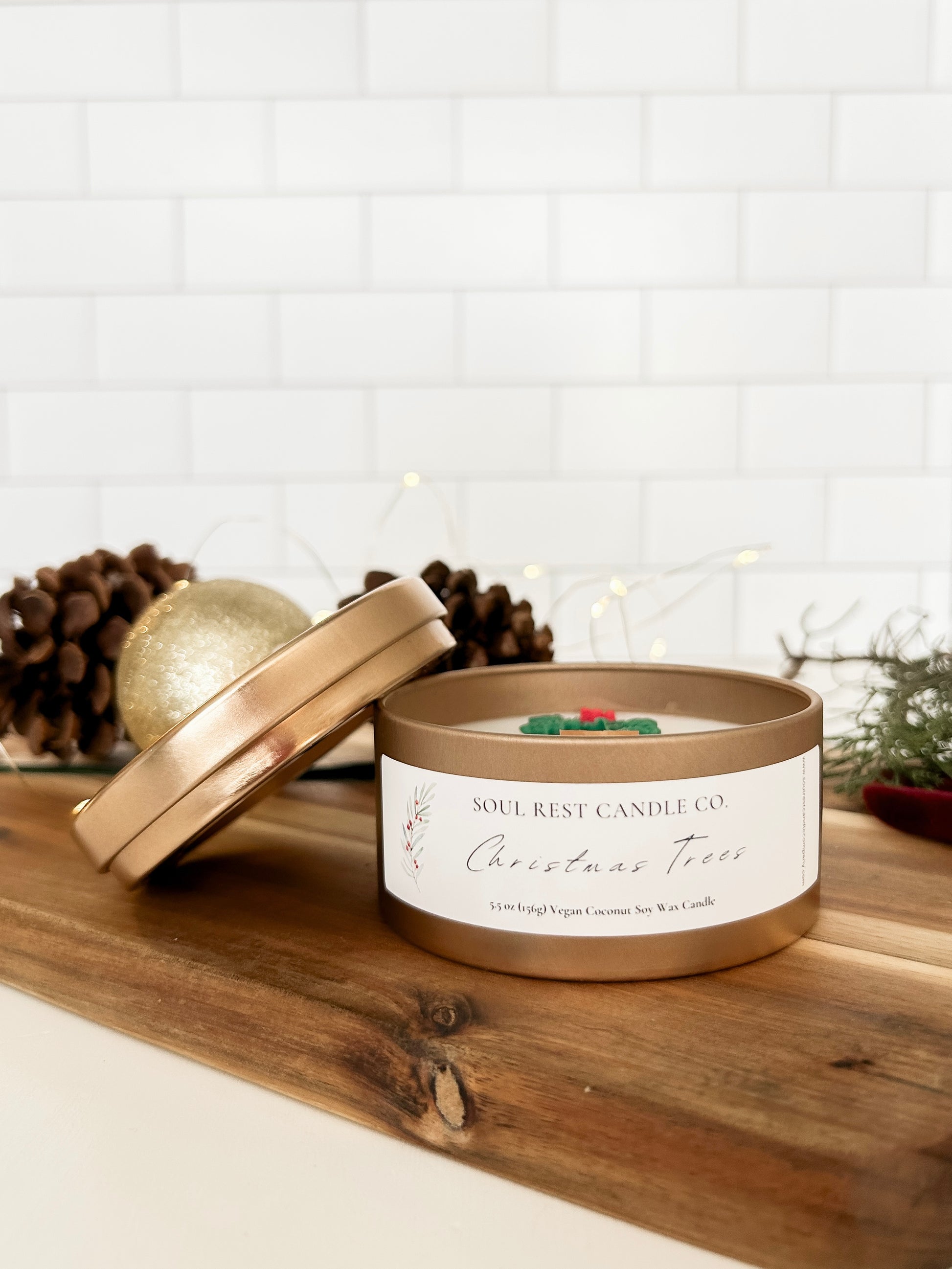 Made of vegan, Coconut Soy Wax, and hand-poured in these gorgeous reusable, metal tins. The addition of eco-friendly pearlized mica makes for a stunning shimmer as it burns. The crackling wooden wick provides just the right amount of crackling for the perfect cozy ambiance.
