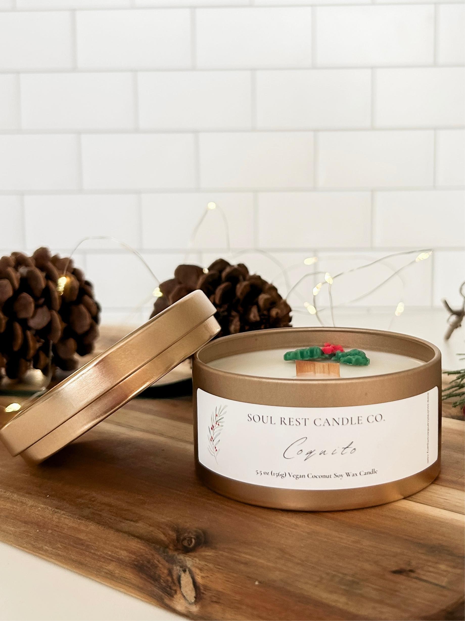 Made of vegan, Coconut Soy Wax, and hand-poured in these gorgeous reusable, metal tins. The addition of eco-friendly pearlized mica makes for a stunning shimmer as it burns. The crackling wooden wick provides just the right amount of crackling for the perfect cozy ambiance.