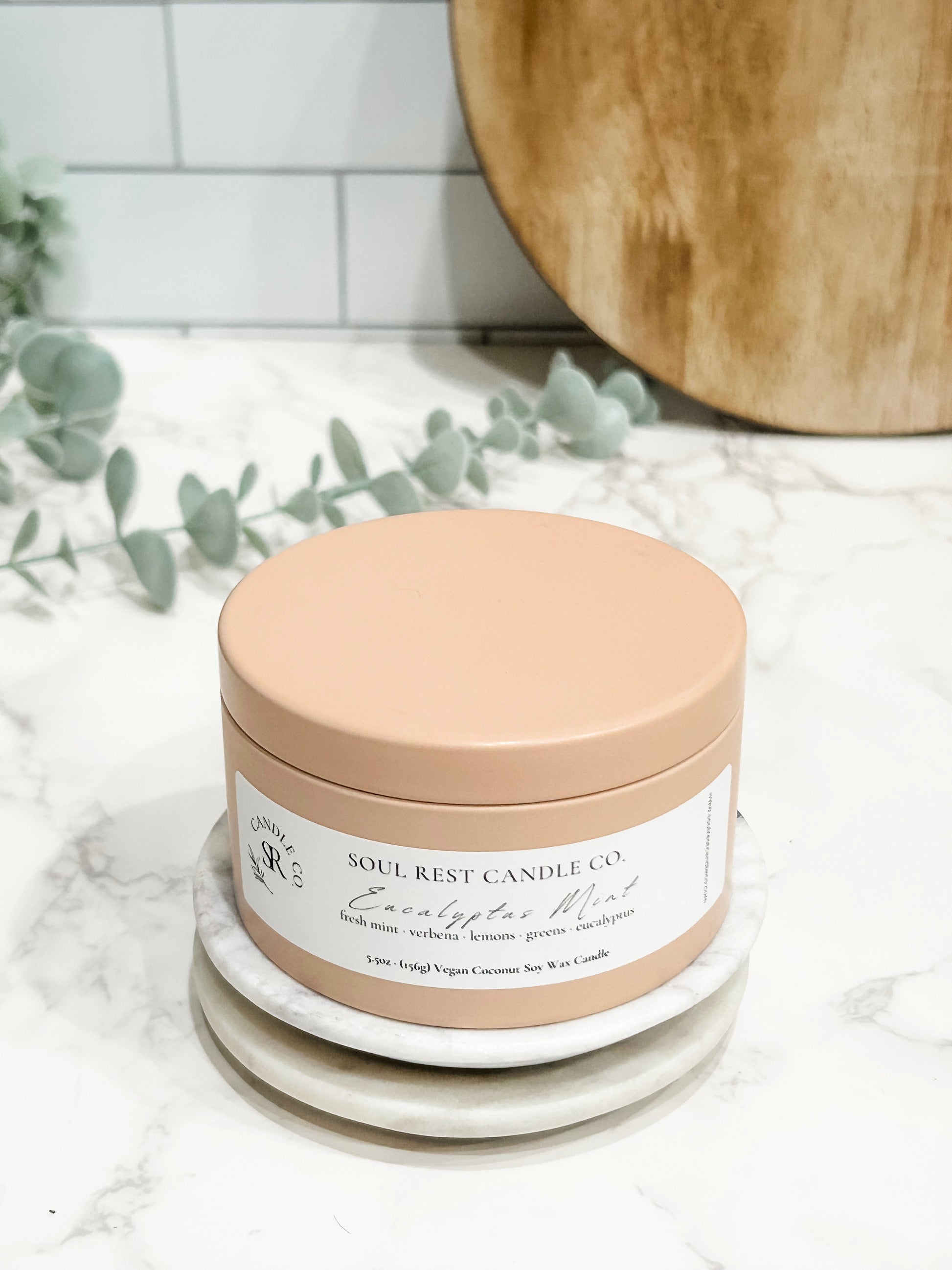 Made of vegan, Coconut Soy Wax, and hand-poured in these gorgeous reusable, metal tins. The addition of eco-friendly pearlized mica makes for a stunning shimmer as it burns. The crackling wooden wick provides just the right amount of crackling for the perfect cozy ambiance.