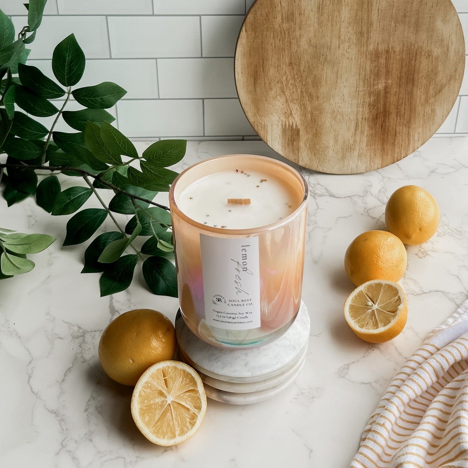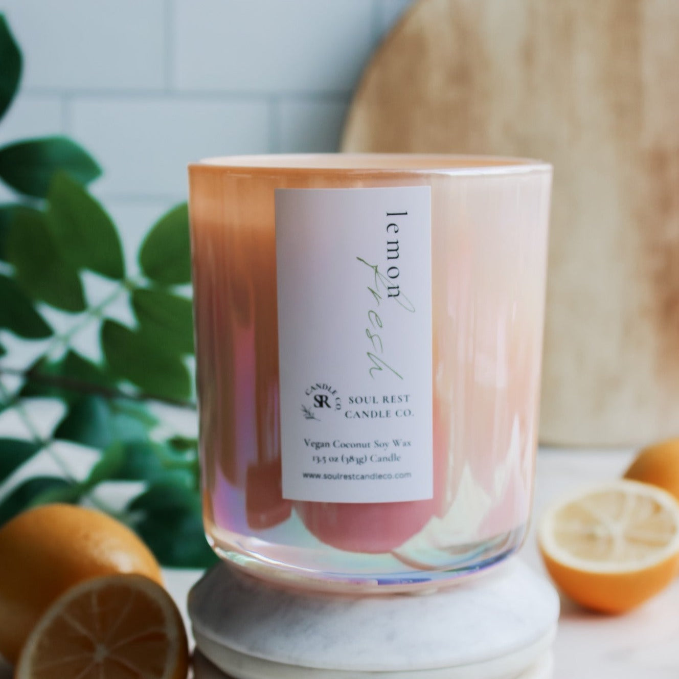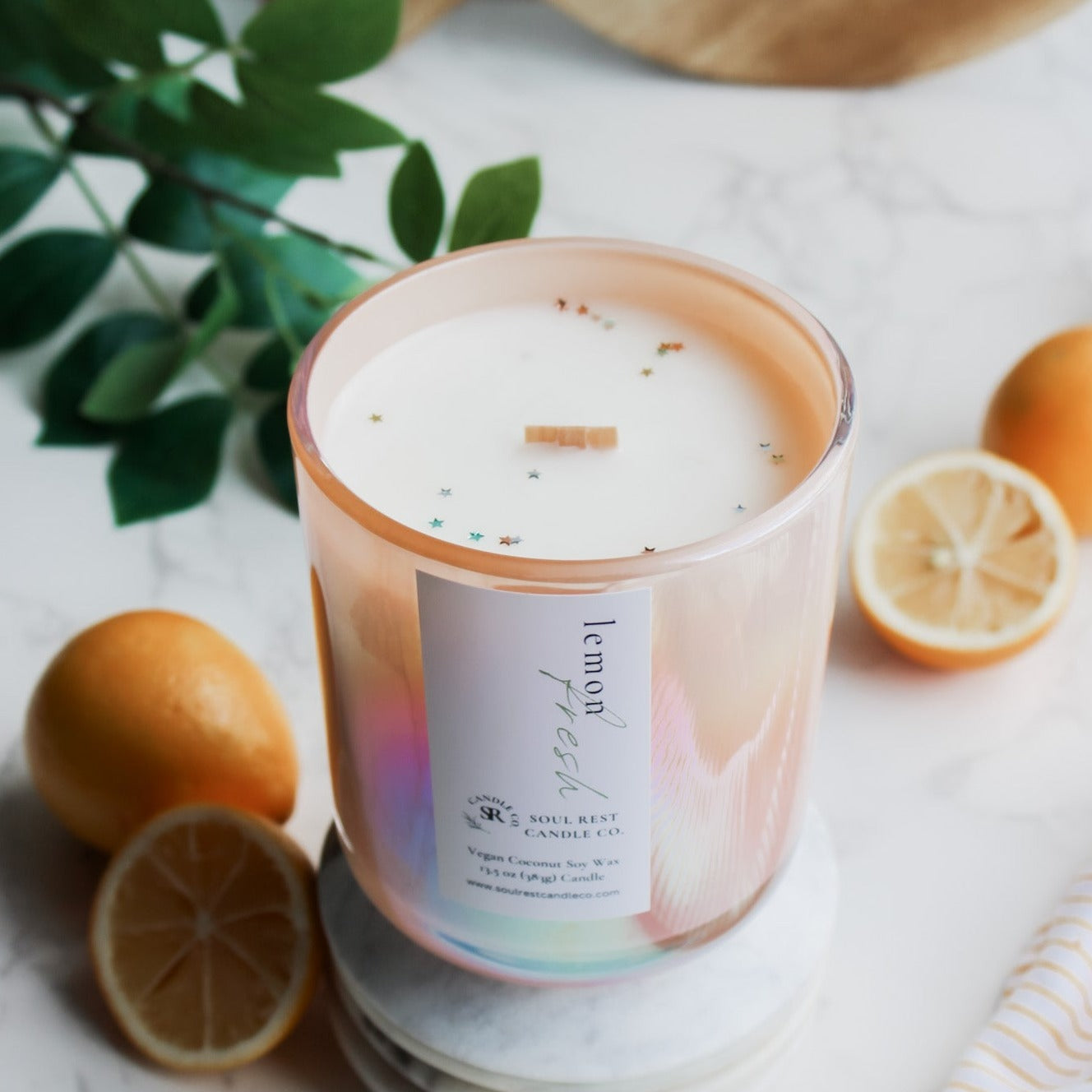 A fresh clean lemon scent just in time for spring cleaning. Is it even spring cleaning without lemons? Notes of zesty lemon, citrus, bergamot and white musk make up this fresh, vibrant and clean candle.