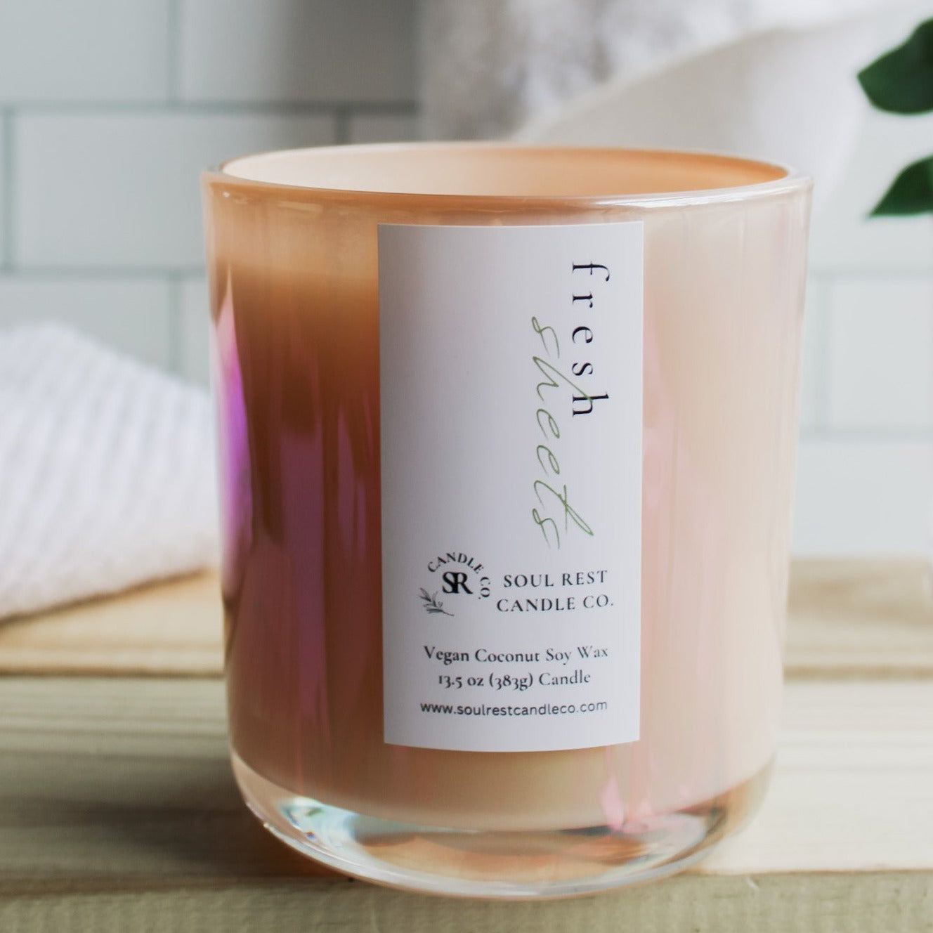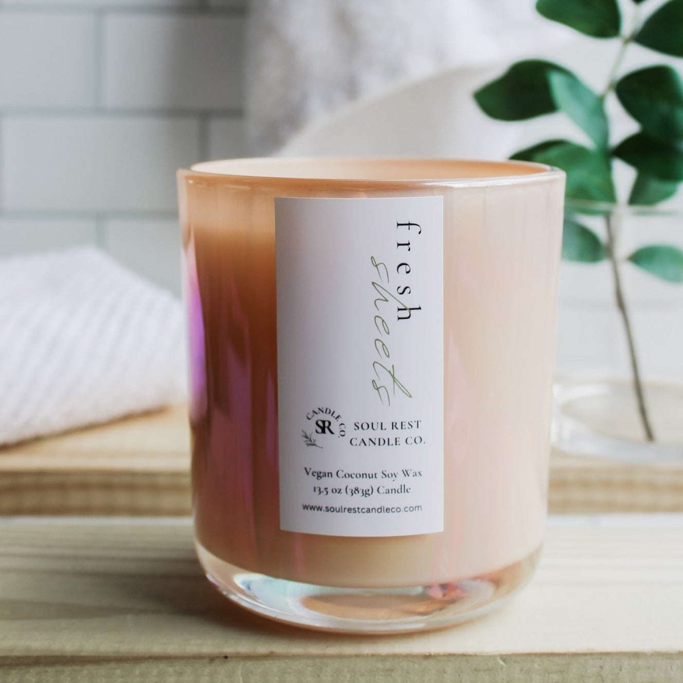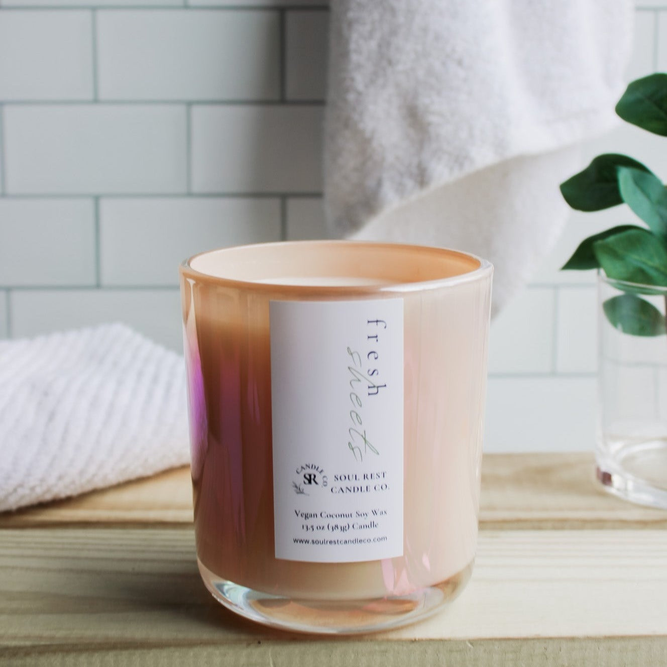 Immerse yourself in nature with our Fresh Sheets candles. This candle is not your typical laundry scent. It’s one that blends meticulously, fresh and clean aromas with those of earthy and beachy scents. Sort of what you would smell, while at the beach, swinging on a hammock next to freshly laundered sheets.