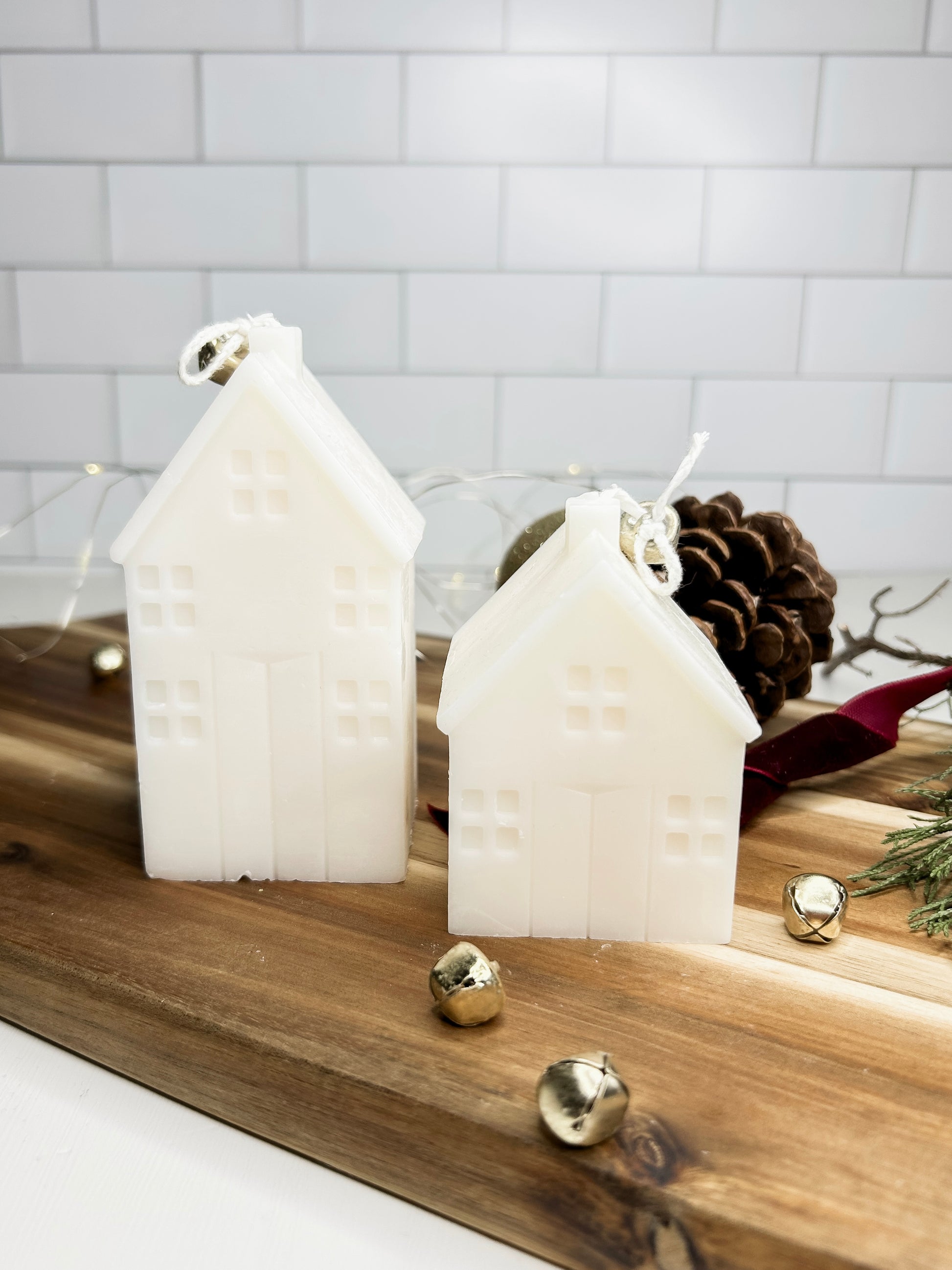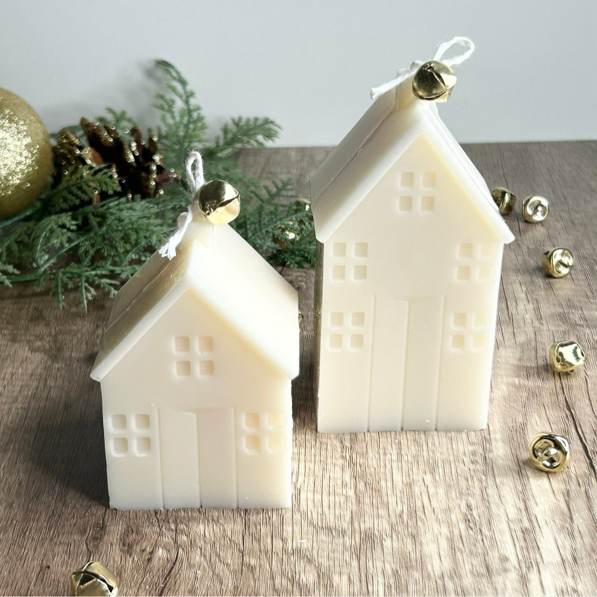 Get ready for the holidays with these cozy Gingerbread House Candles. Can be purchased as a set or separately. Adorned with a jingle bell, these sculptured candles can be used as decor or they can be lit to enjoy.