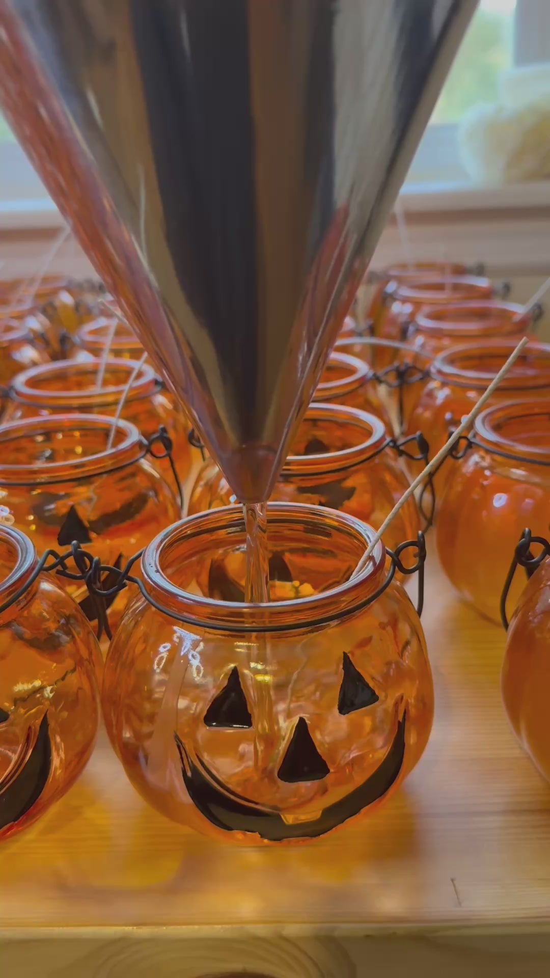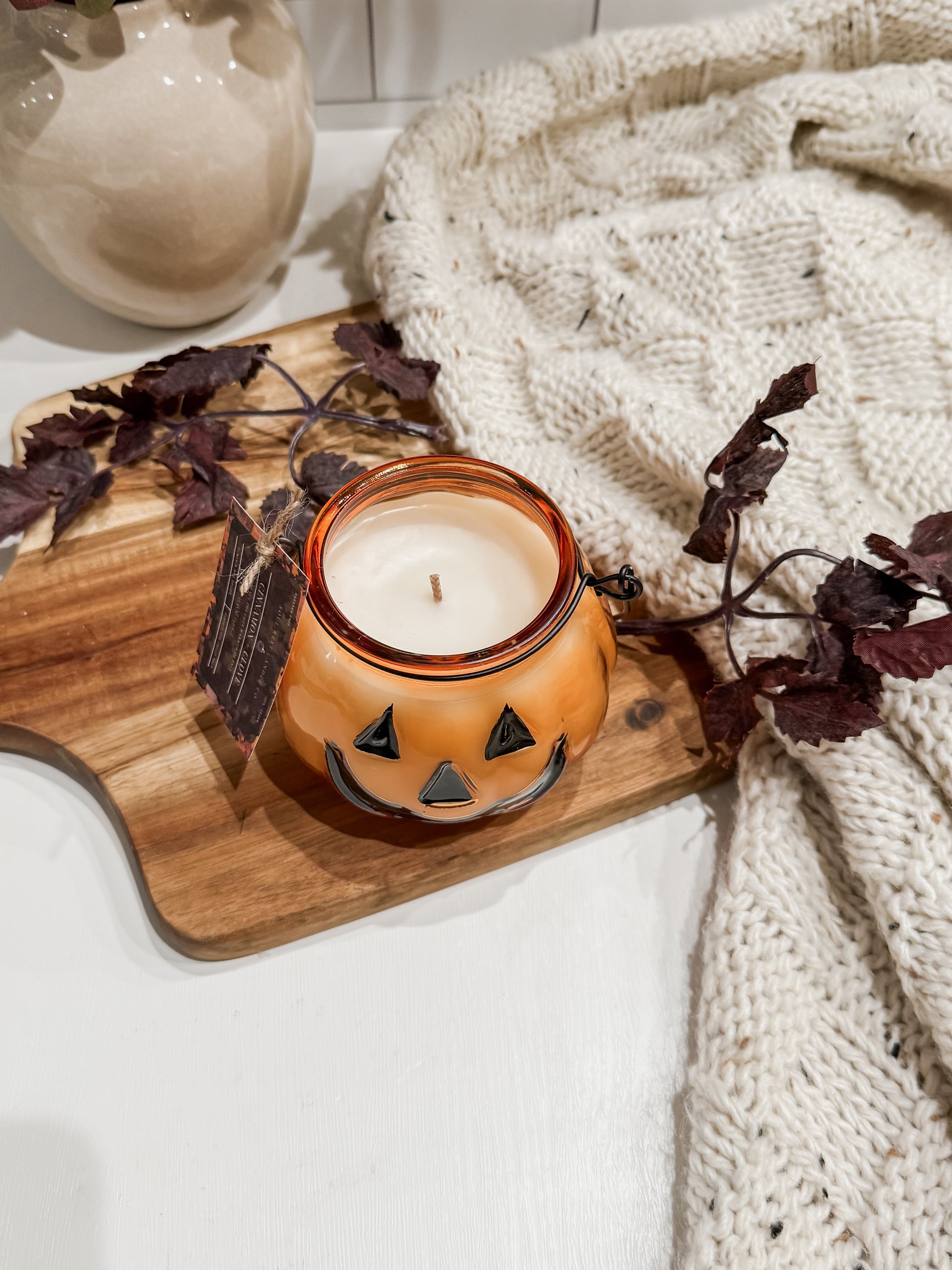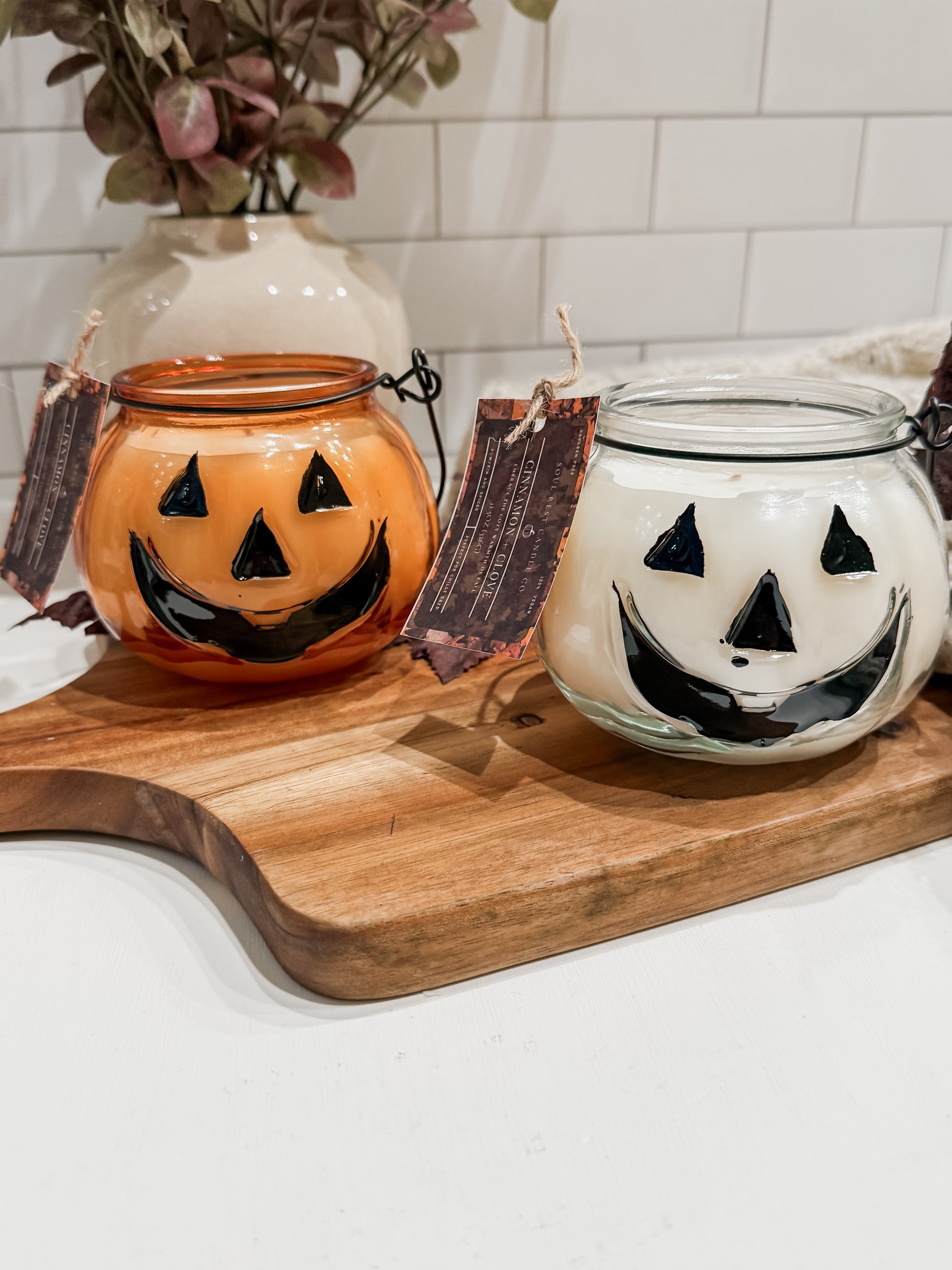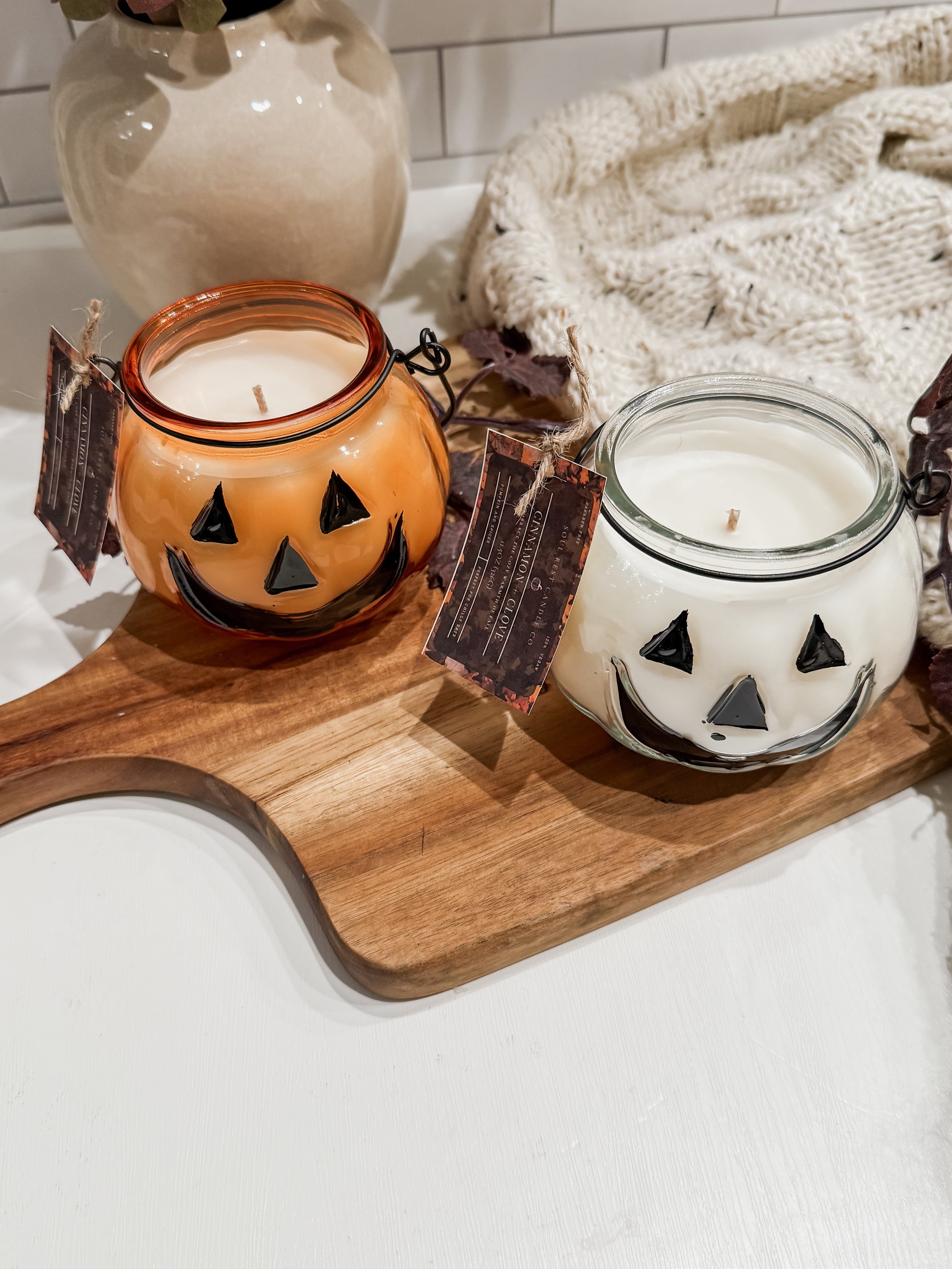 Add festive fun to your fall home decor with our Limited Edition Jack-O-Lantern Pumpkin candles. An adorable addition to your autumn and fall home decor. Available in your choice of color: Orange or Clear