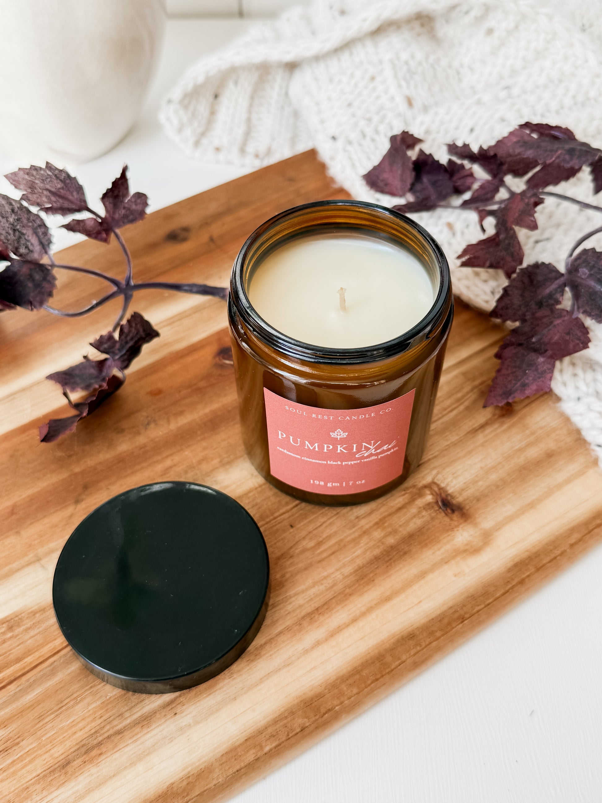 Experience the rich, spicy aroma of fall’s bounty with this indulgent blend. The warmth of cardamom and black pepper complements the sweetness of brown sugar, vanilla, and praline, while apple and pumpkin add a touch of seasonal nostalgia. This candle is perfect for creating a cozy and welcoming space, filling your home with the scents of homemade desserts and festive gatherings.