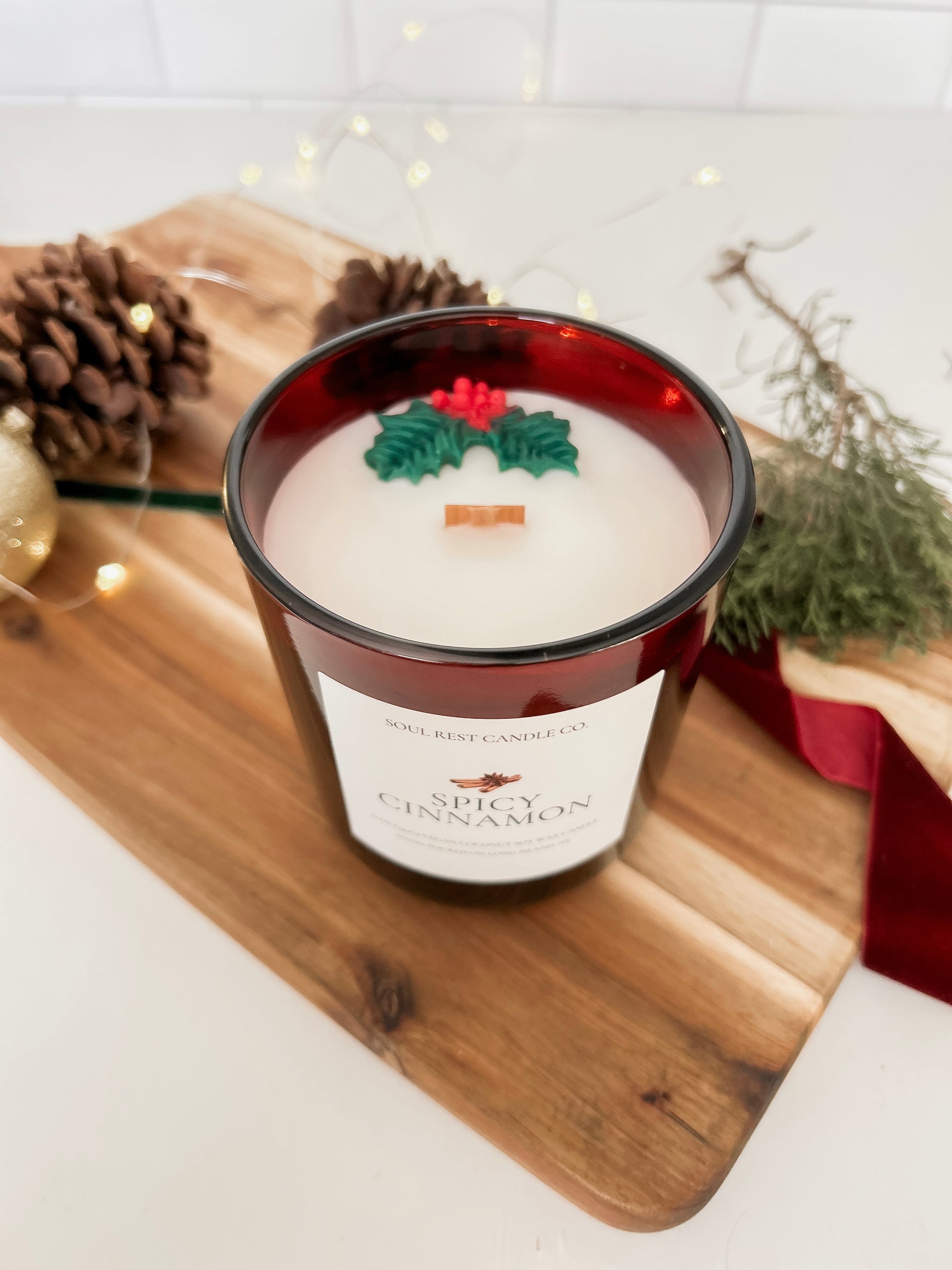 Welcome the holidays with this spicy scented candle. This inviting Christmas candle wraps you in a cozy embrace of holiday spices and sweetness. Rich cinnamon and clove blend perfectly with the smooth, creamy notes of vanilla and cream, creating a scent that feels like a comforting cup of spiced eggnog by the fire. Let the gentle warmth and sweetness fill your home with the nostalgic spirit of the season.