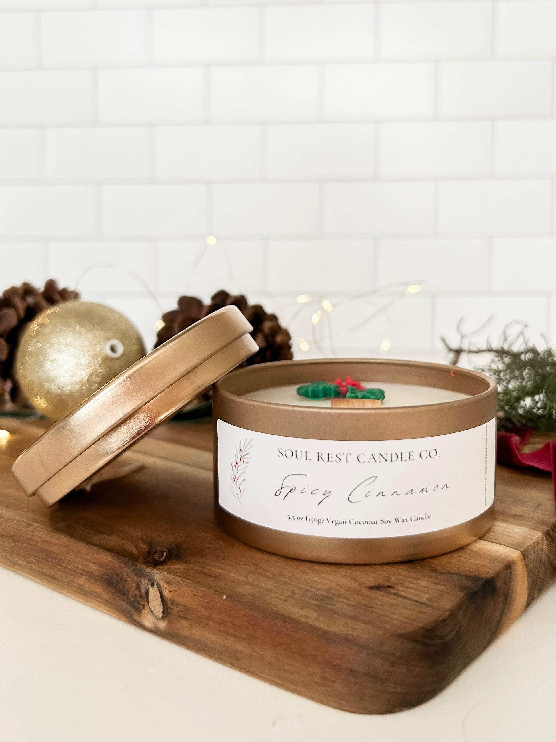 Welcome the holidays with this spicy scented candle. This inviting Christmas candle wraps you in a cozy embrace of holiday spices and sweetness. Rich cinnamon and clove blend perfectly with the smooth, creamy notes of vanilla and cream, creating a scent that feels like a comforting cup of spiced eggnog by the fire. Let the gentle warmth and sweetness fill your home with the nostalgic spirit of the season. This candle comes in these gorgeous, amber jars with cotton wicks and adorned with a beautiful holly. This candle is sure to set a cozy, warm vibe.