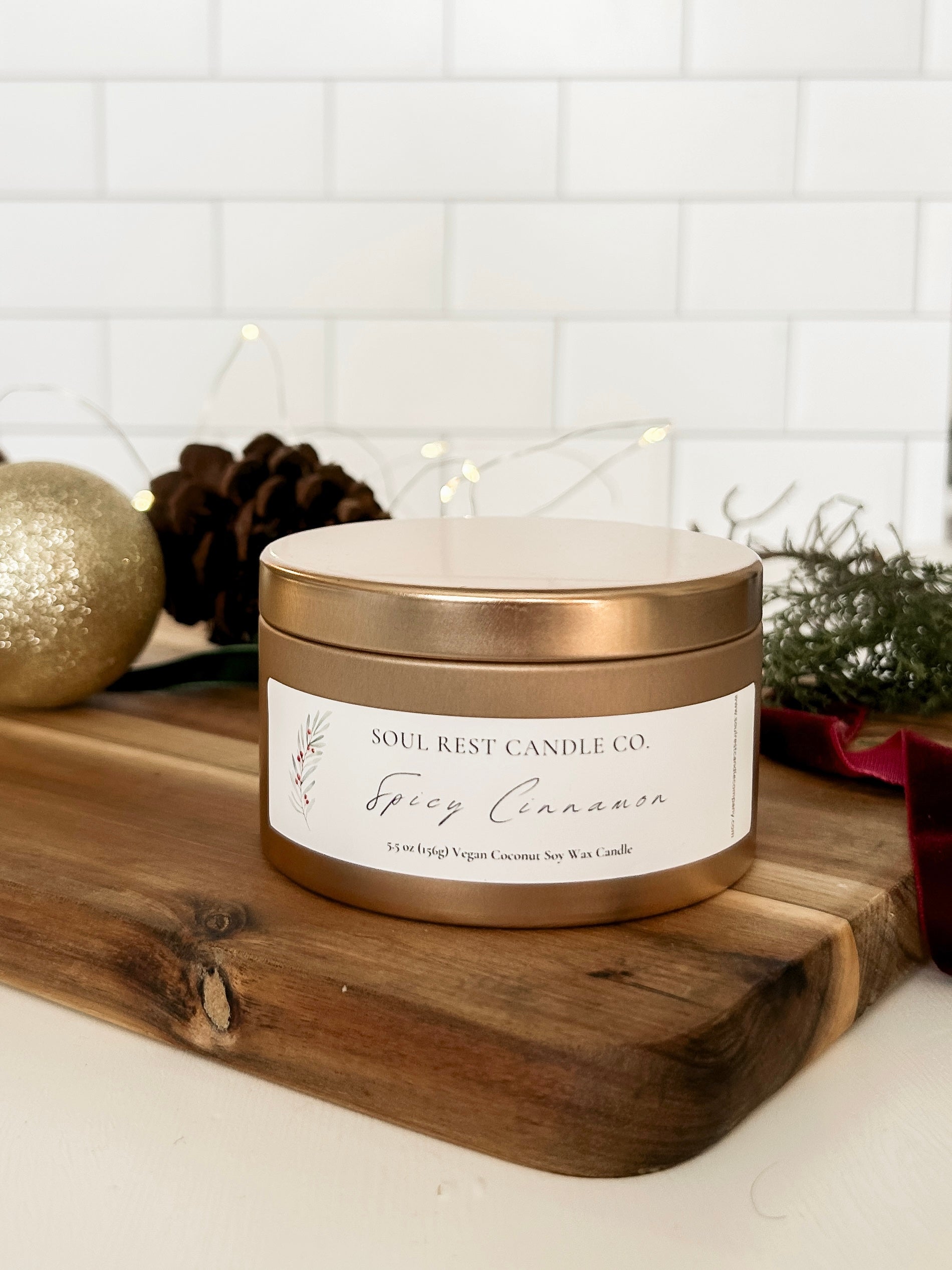 Made of vegan, Coconut Soy Wax, and hand-poured in these gorgeous reusable, metal tins. The addition of eco-friendly pearlized mica makes for a stunning shimmer as it burns. The crackling wooden wick provides just the right amount of crackling for the perfect cozy ambiance.