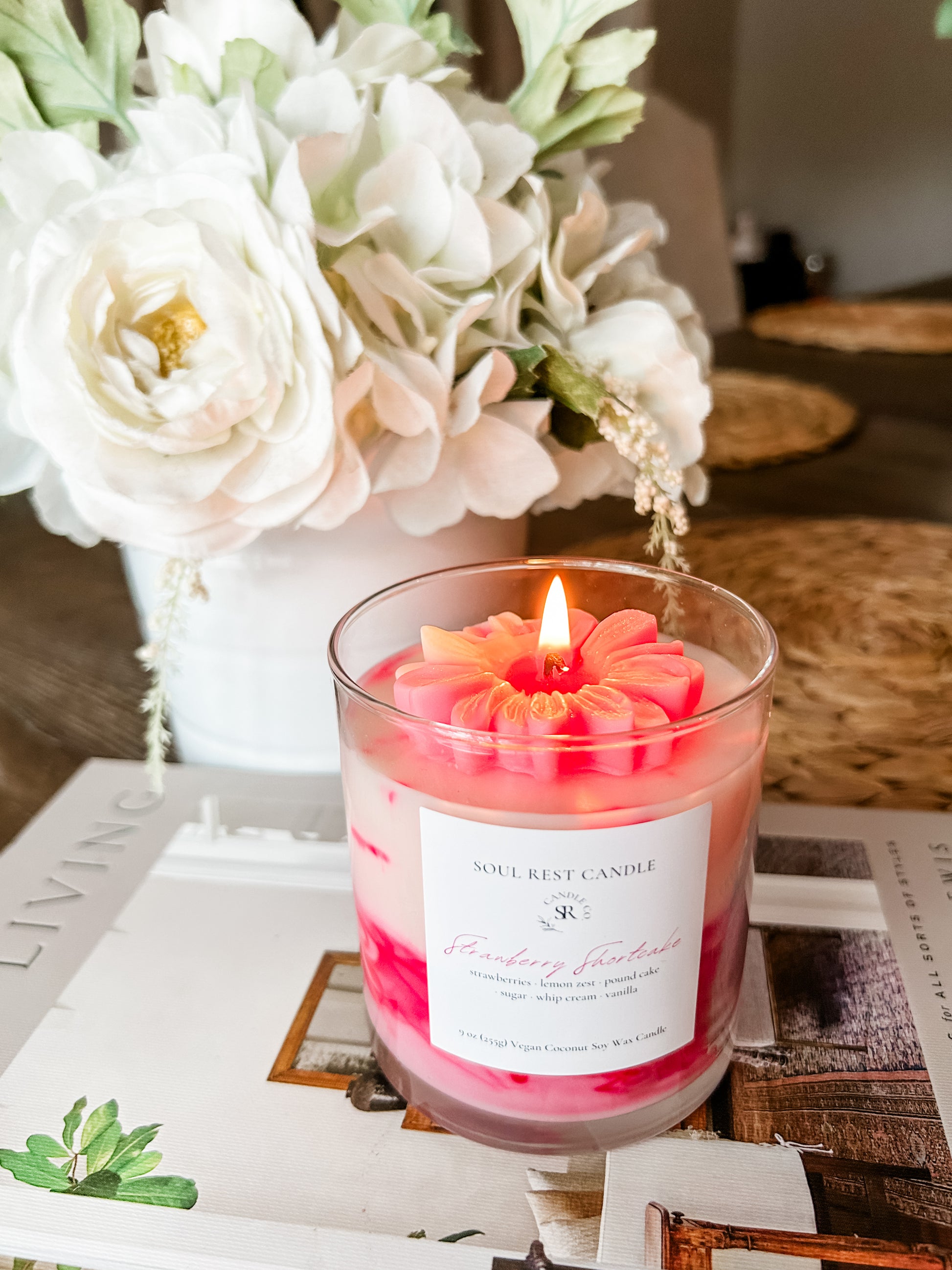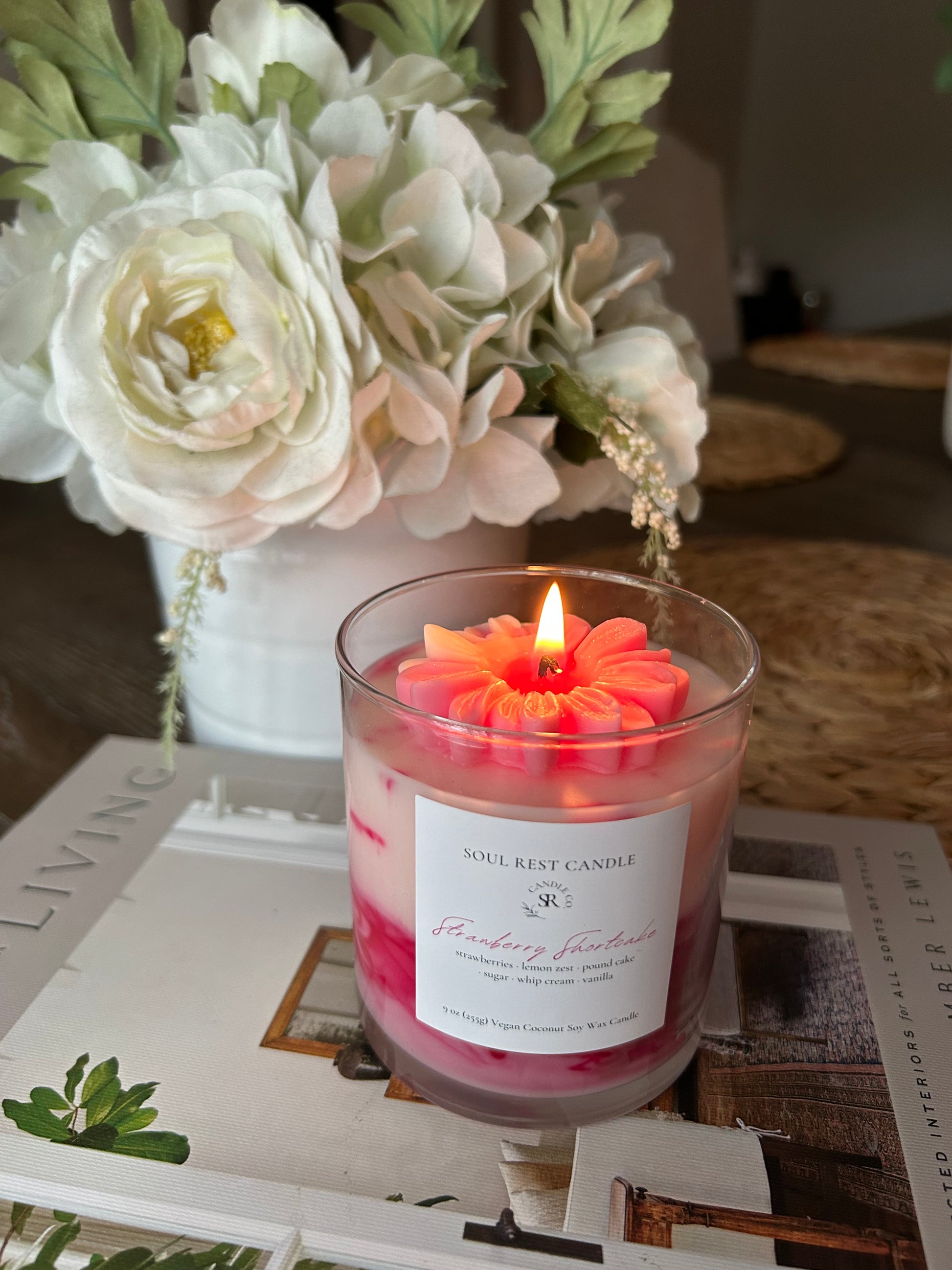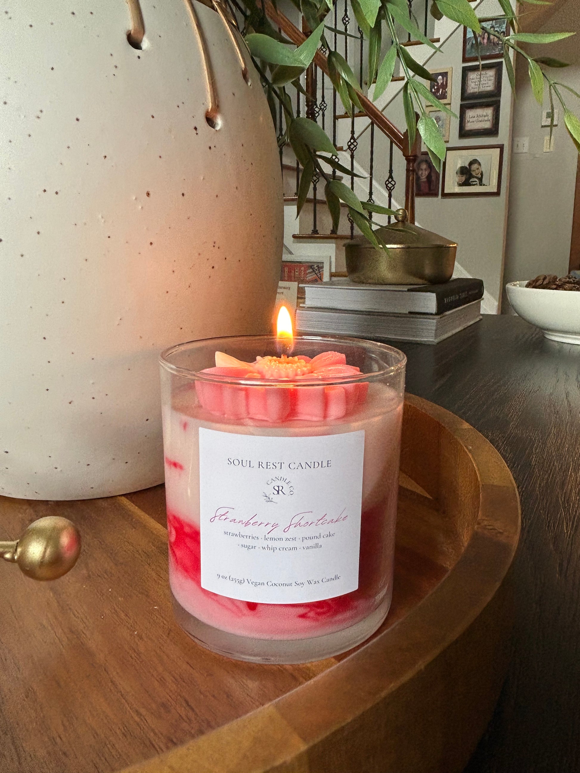 Strawberry Shortcake - Indulge in the warm comfort of a freshly baked pound cake draped in ripe, juicy strawberries. Creamy vanilla and golden butter drip through every slice, while sun-kissed strawberries add a bright, sweet-tart lift, like the first bite of dessert on a lazy afternoon. This scent wraps your home in cozy nostalgia, creating an inviting, heartwarming atmosphere perfect for moments of gratitude and delight.
