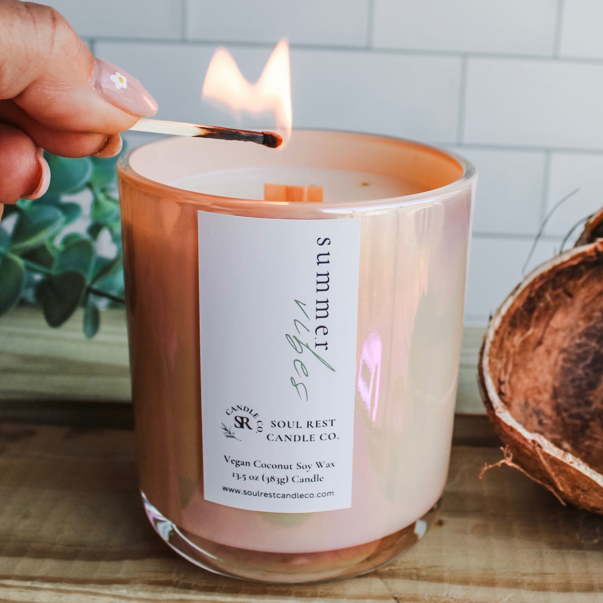 This candle will have you feeling like you're strolling on the beach with coconut-filled palm trees. A beautiful blend of coconut, nuts and caramel make this the perfect summer candle.