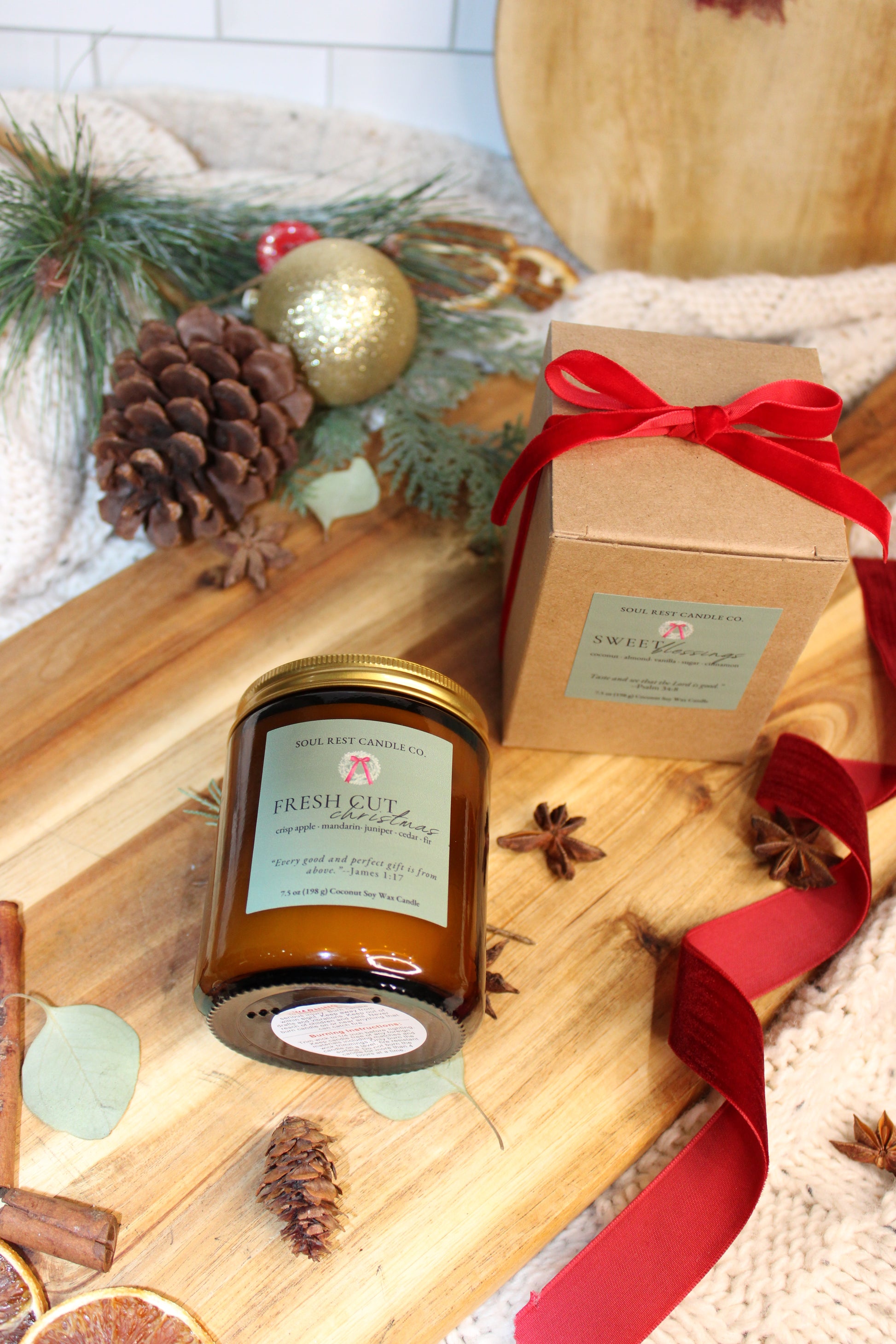 As this candle burns, let its evergreen aroma remind you of the miracle we celebrate: the arrival of Jesus, the true Light who entered the world to bring hope, renewal, and everlasting life. Just as a fresh-cut tree fills a home with life and fragrance, Christ came to fill our hearts with peace and joy.